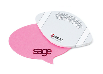 Features: Superior, precision die-cuts. Ultra re-positionable adhesive. Available in a variety of shapes and sizes. Have your logo and message imprinted in digital 4-color process. Available in Ultra-White, yellow, green, blue, ivory or gray paper. Also, in new neon colors—bright orange, bright green, bright pink and bright yellow! Call for details on ordering neon colors. Looking to go eco-green? Try our eco-friendly option of white 100% post consumer recycled paper for an additional price. Call us for details. Made in the USA.